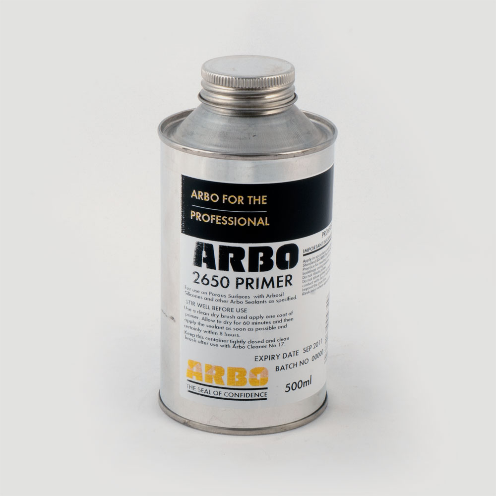 ARBO 2650 PRIMER IS A ONE PART, SOLVENT CONTAINING, AIR DRYING POLYACRYLATE/SILANE BLEND BASED PRIMER. PRIMER FOR ARBOSIL AND ARBOMERIC.